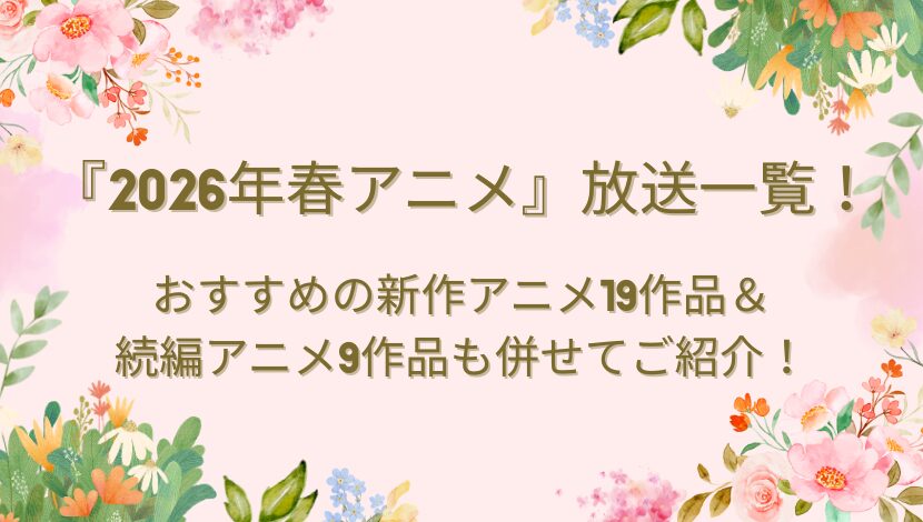 今回は、『2026年春アニメ』の放送作品一覧とその中から選んだおすすめの新作アニメ19作品&続編アニメ9作品をご紹介していきたいと思います!
