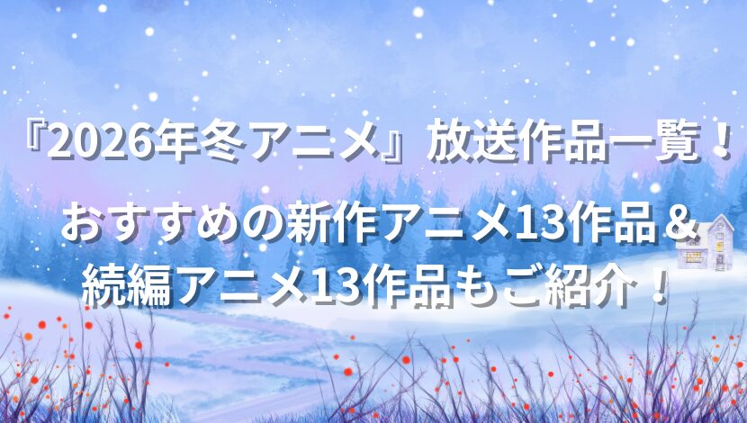 今回は『2026年冬アニメ』放送作品一覧とその中から選ぶオススメの新作アニメ13作品&続編アニメ13作品をご紹介していきます!